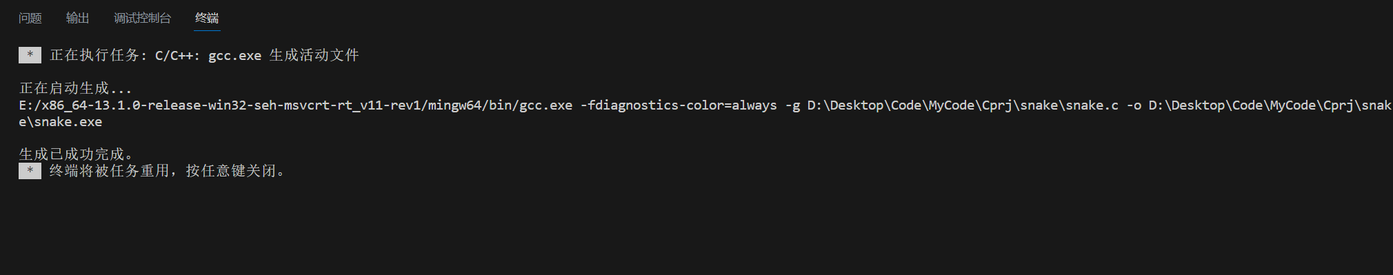 如果程序编译成功,你会看到code的下方终端出现了以下输出: