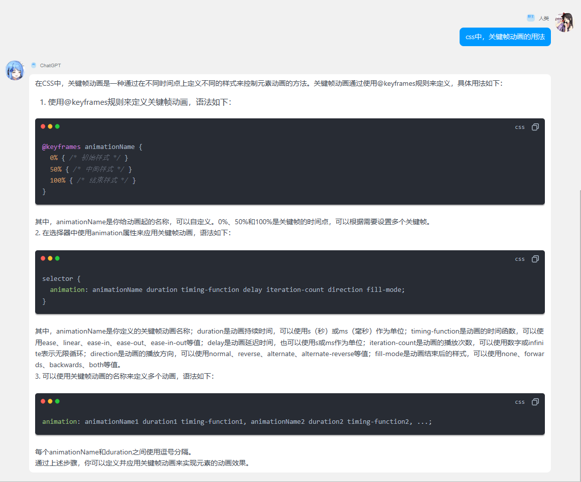 因为动效还需要通过js实现,也是遇到了不少问题。一番思索后,我想能不能抛开js让它自己播放个动效然后两秒后自己消失?再次询问AI,他给出了解决思路——关键帧动画。